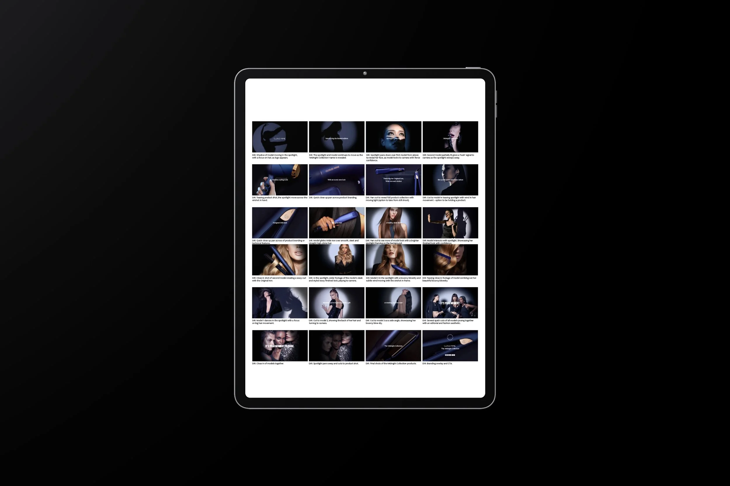 The storyboard shows an evolution from teasing in the midnight light, to beautifully styled finished looks.